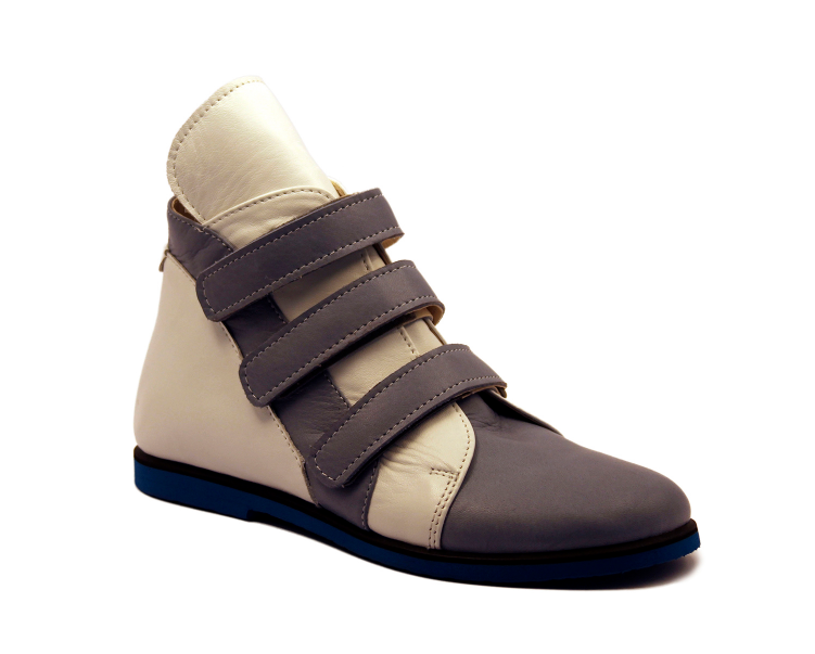 Ботинок ортопедический демисезонный, двухцветный, на трех липучках.