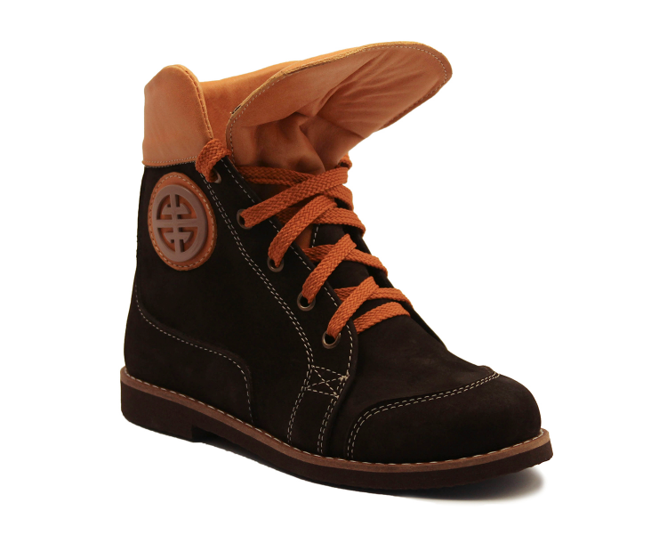 Ботинок ортопедический демисезонный, двухцветный, на шнурках.