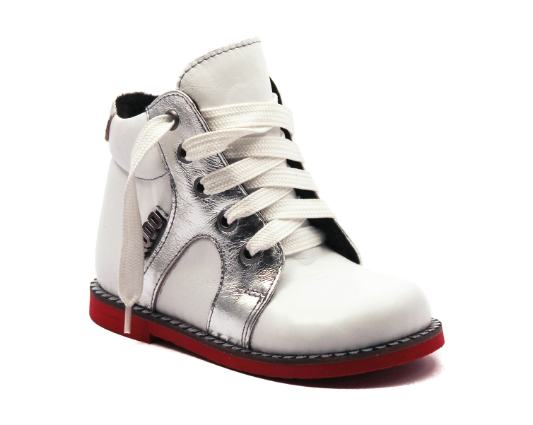 Жесткий высокий задник, анатомическая форма колодки и шнуровка позволяют фиксировать в правильном положении ножку ребенка. Жесткий подносок защищает пальчики ребенка от случайных травм. В базовой комплектации поставляется профилактическая стелька. Под заказ возможна поставка с плосковальгусной или вирусной стелькой. Каблук Томаса. Эта модель может использоваться в качестве профилактической, лечебно-профилактической или лечебной обуви.
