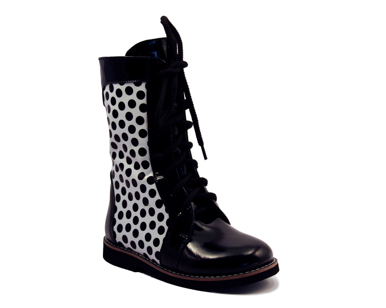 Сапог демисезонный для девочки высокий на шнурках и на змейке.