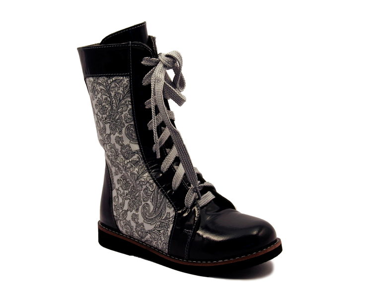 Каблук Томаса. Жесткий высокий задник, удлиненные берцы, жесткий подносок. В базовом комплекте съемная ортопедическая профилактическая стелька. Возможна комплектация плосковальгусной или варусной стелькой. Высокая шнуровка плотно фиксирует стопу в анатомически верном положении, жесткий подносок предохраняет от травм. Длинная змейка облегчает каждодневное одевание обуви. Ортопедическая колодка обеспечивает правильное развитие стопы ребенка. Модель относится к категории лечебной, лечебно-профилактической или профилактической обуви.