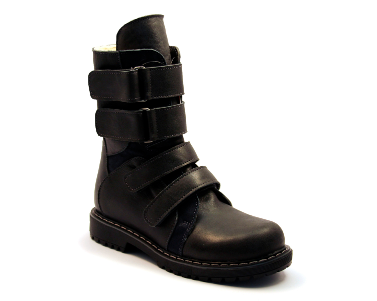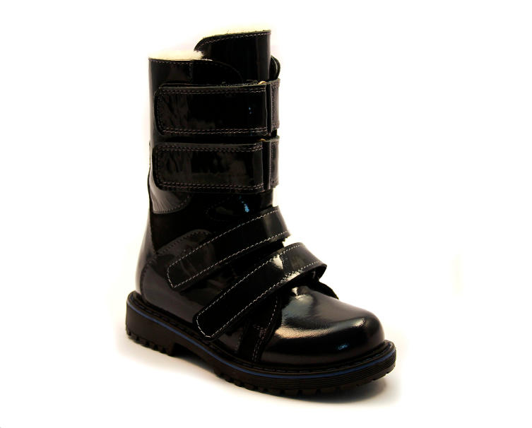 В базовом комплекте съемная ортопедическая профилактическая стелька. Возможна комплектация плосковальгусной или варусной стелькой. Жесткий высокий задник, удлиненные берцы, жесткий подносок.Наличие 4-х липучек по всей длине плотно фиксирует стопу в анатомически верном положении, жесткий подносок предохраняет от травм. Ортопедическая колодка обеспечивает правильное развитие стопы ребенка. Модель относится к категории лечебной, лечебно-профилактической или профилактической обуви. Каблук Томаса.