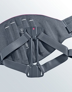 Поясничный бандаж-корсет создан для этапного лечения болей в поясничном отделе позвоночника. В остром периоде, т.н. прострел, используется бандаж с дополнительной стабилизирующей шиной. Этим достигается практически полная иммобилизация поясничного отдела позвоночника в положении, обеспечивающем уменьшение степени сдавления нервных корешков грыжей. По мере выздоровления стабилизирующую шину можно отстегнуть и пользоваться бандажем с динамическими ребрами жесткости, которые оградят поясничный отдел позвоночника от чрезмерной подвижности, способной спровоцировать новое обострение. При желании использовать бандаж постоянно с профилактической целью можно приобрести дополнительный комплект ребер жесткости меньшей упругости. Таким образом, Lumbamed disc дает возможность выбирать нужную степень стабилизации в зависимости от стадии лечения.